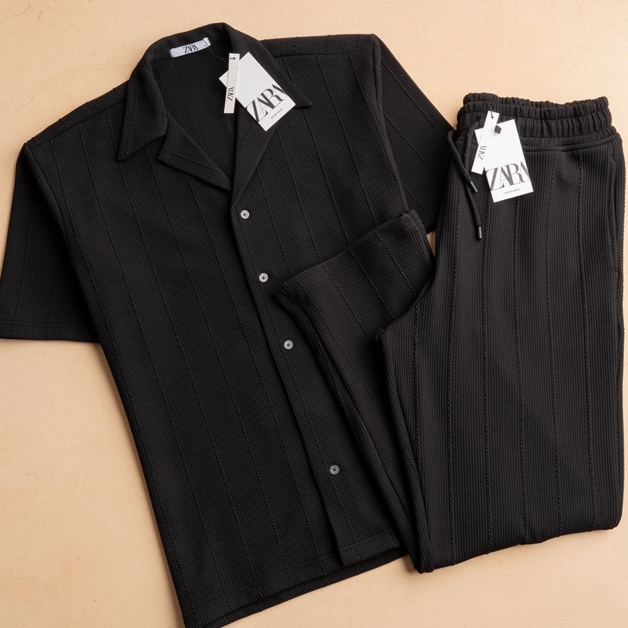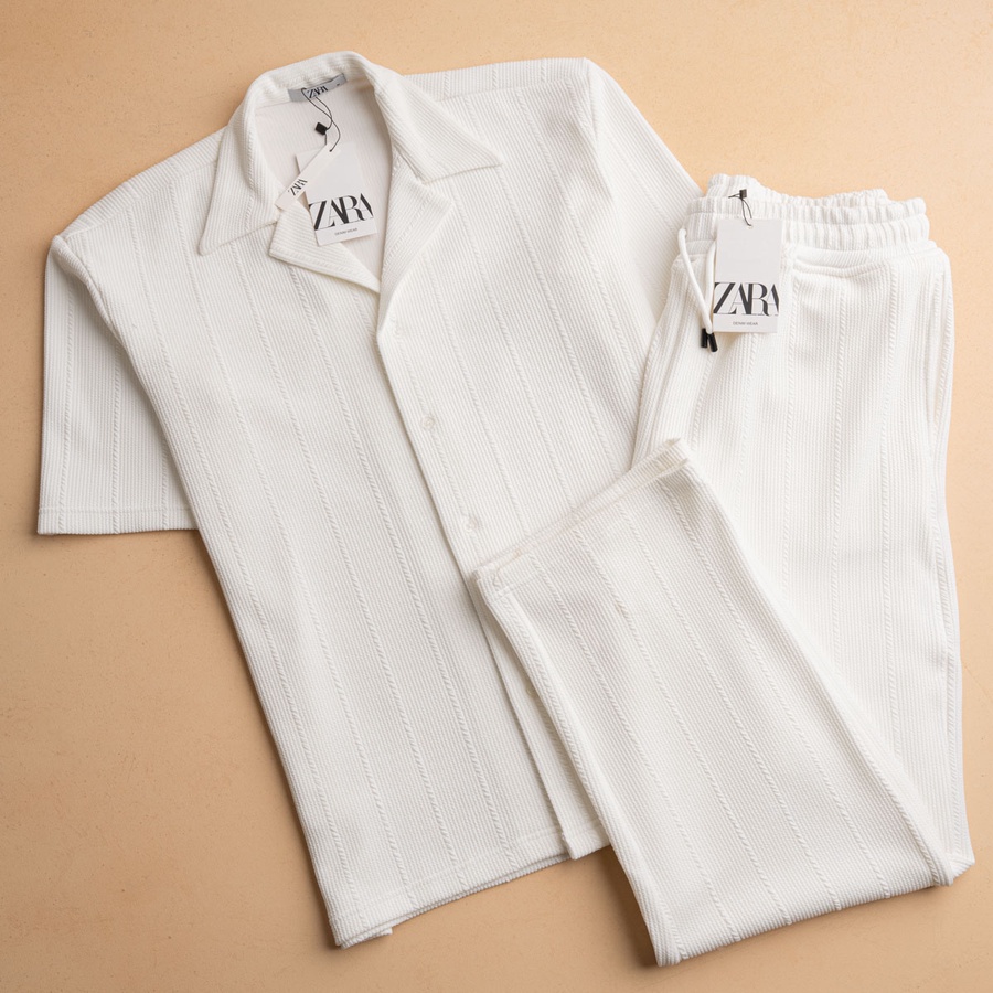 سوت ZARA Jakar عبارة عن قميص نص كم وبنطلون بخامة جاكار قطن 100% فاخرة،