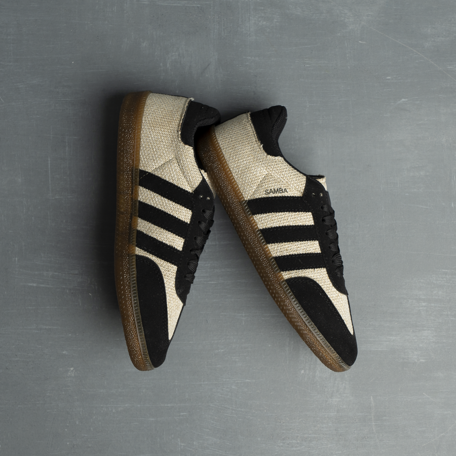 حذاء سامبا رجالي بخامة مستوردة بالكامل وتصميم بلون خيش بيج مع خطوط سوداء، ولمسة ناعمة على النعل البيج… شكل فخم ومختلف يلفت الانتباه من أول نظرة.