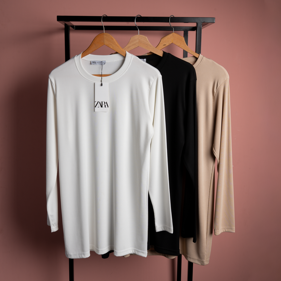 تيشيرت ZARA Basic Pi5 هو الاختيار العملي لكل بنت بتحب القطع الأساسية اللي تنفع في كل وقت وكل ستايل. تصميم طويل وأنيق بخامة مستوردة مريحة يديكي شكل متناسق وإحساس ثابت طول اليوم، سواء في الخروج، الشغل، أو اللبس اليومي الكاجوال.