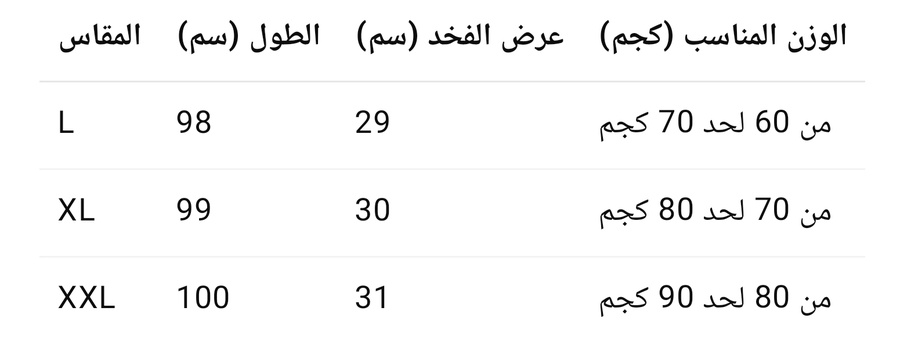 - المقاسات: متوفر بمقاسات L – XL – 2XL بتلبي كل الأذواق والأحجام.